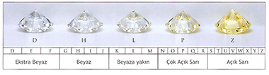 D, E, F, G’dir. Doğadaki pırlantaların büyük çoğunluğu H-L renkleri arasındadır.