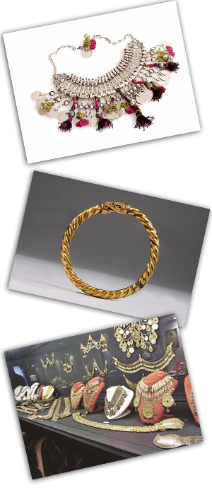 Taç, küpe, broş, toka, elbise kemeri gibi takılarda hilal, spiral şekilleri, nar,